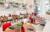 Bufetul de mic dejun tip include o varietate de preparate cu un conținut ridicat de antioxidanți și un colț cu sucuri proaspete. solicită mic dejun și in cameră, iar proprietatea asigură un mic dejun matinal cu gustări usoare.