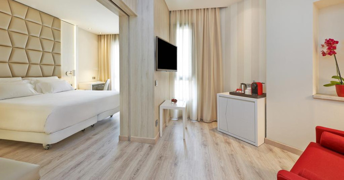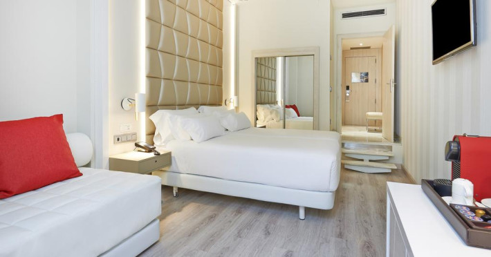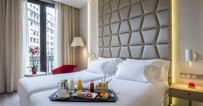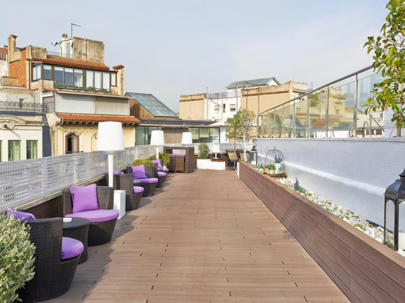 The hotel was built in 1992 and consists of 6 floors and a total of 145 rooms of which 5 are singles, 140 are doubles and 5 are suites. Amongst the hotel facilities count a foyer with 24-hour reception, a safe, a conference room, a cloakroom and a lift. Dining options include a café, a cocktail bar and an inviting bar and a restaurant (highchairs for infants). Further facilities include Internet access and room and laundry services. The hotel is equipped with the latest technical equipment and features a particular lighting system, creating a welcoming atmosphere together with the wooden interior..This charming city and conference hotel is located at the heart of Barcelona between the Plaza Catalunya (the main shopping and cultural district of the city) and the Paseo de Sant Joan. From here, guests are also within easy reach of the Parque de la Ciudadela, the Triumph Arch as well as the historical centre of the city. The city centre and Las Ramblas are just 10 minutes away and there are several shopping areas surrounding the hotel where guests may explore the different shops, boutiques, bars and restaurants..The stylish rooms come with an en suite bathroom with hairdryer, direct dial telephone, satellite/ cable TV, hi-fi stereo system and Internet access. They also come equipped with a minibar, a king-sized bed, their own safe and air conditioning as standard..A breakfast buffet is available to hotel guests every morning..The hotel offers its own outdoor swimming pool with sun loungers and parasols, a sauna, a solarium and a gym..The hotel accepts American Express, Diners Club, Eurocard, MasterCard and VISA.