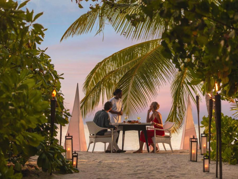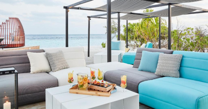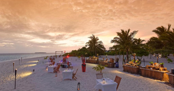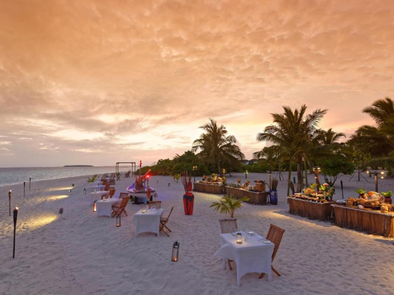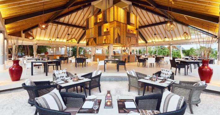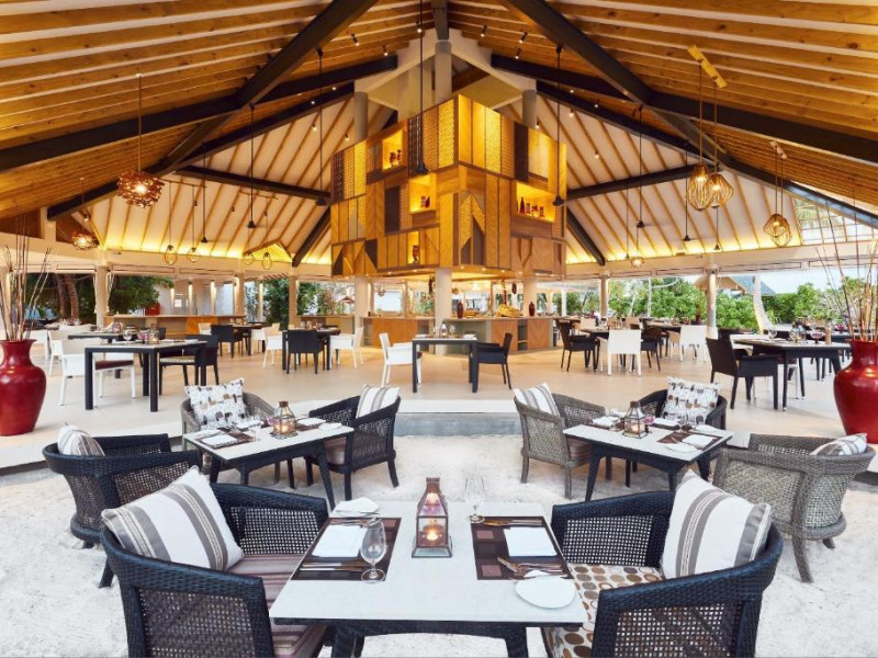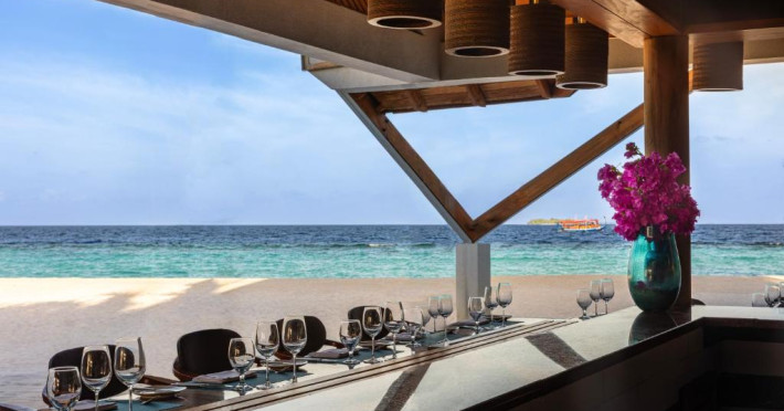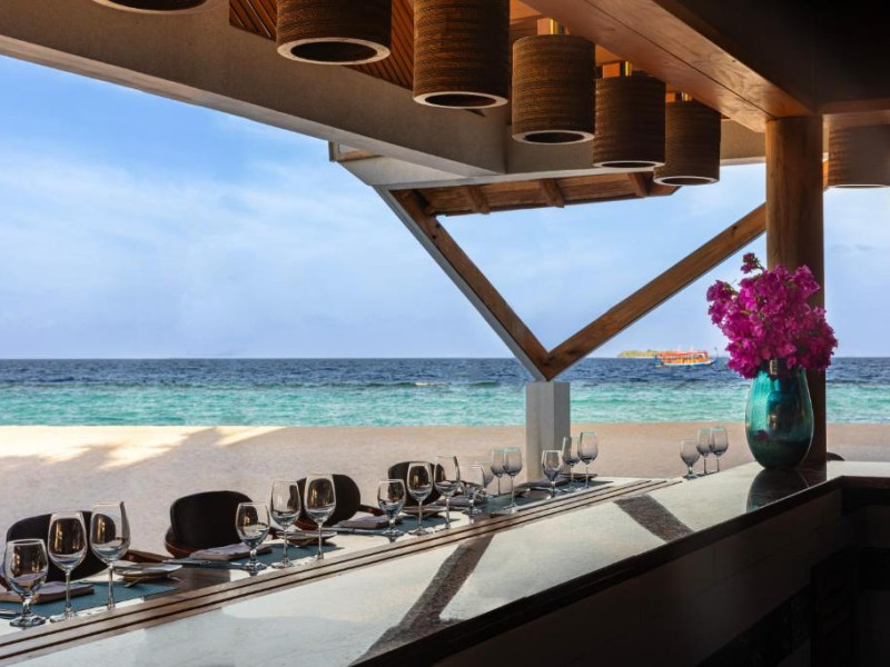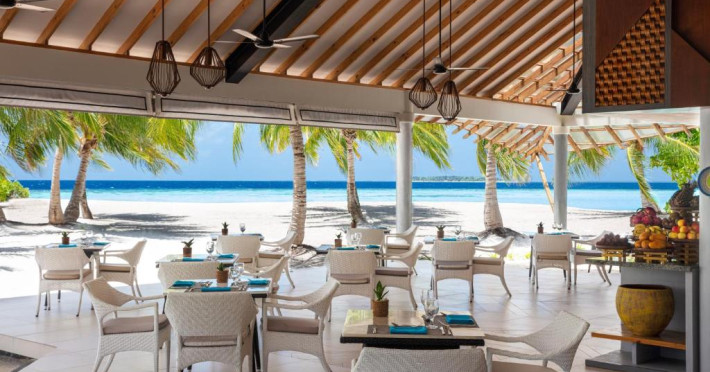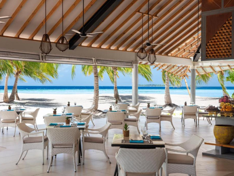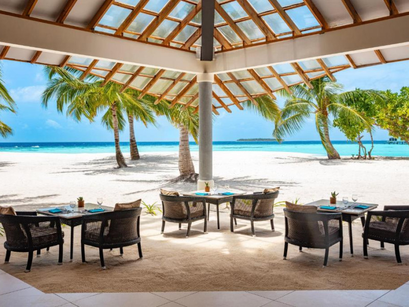 Opțiunile de luat masa includ REEF, care servește o selecție de delicii asiatice, SURF care servește fructe de mare la grătar și Pizza Kaage, unde oaspeții pot savura mese ușoare și pot lua pizza la pachet. Iru Bar este un bar pe plajă, in timp ce cocktailuri, băuturi și gustări pot fi savurate la Thari Bar in timp ce soarele strălucește și mai departe la barul de la piscină.