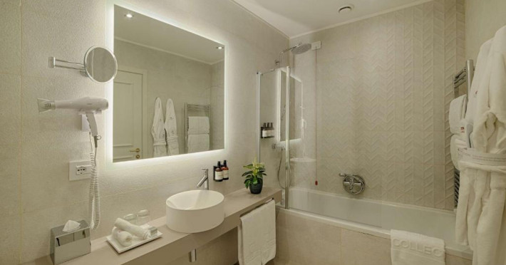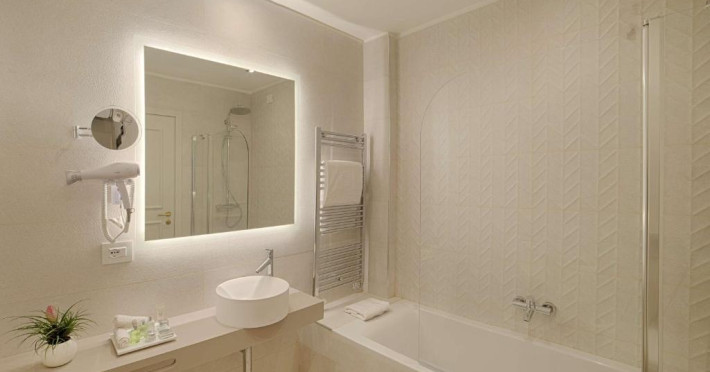 Proprietatea servește zilnic micul dejun à la carte cu fructe proaspete, suc, produse de patiserie, mezeluri, branzeturi și iaurt. Restaurantul Oro Bistrot by Natale Giunta oferă mancăruri romane și naționale tradiționale. La Secret View - Rooftop Cocktail Bar puteți să savurați băuturi.