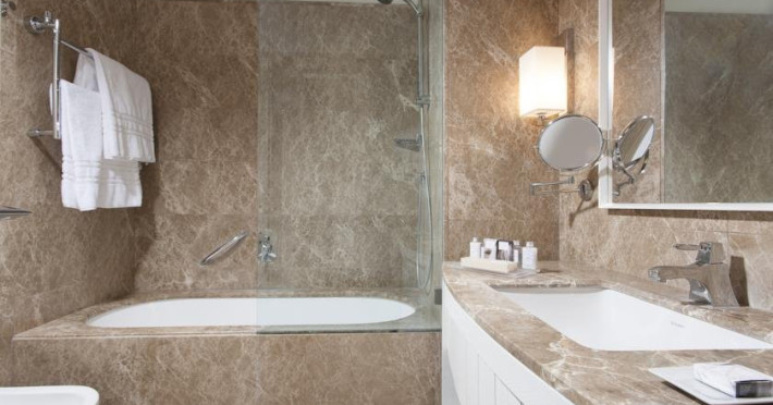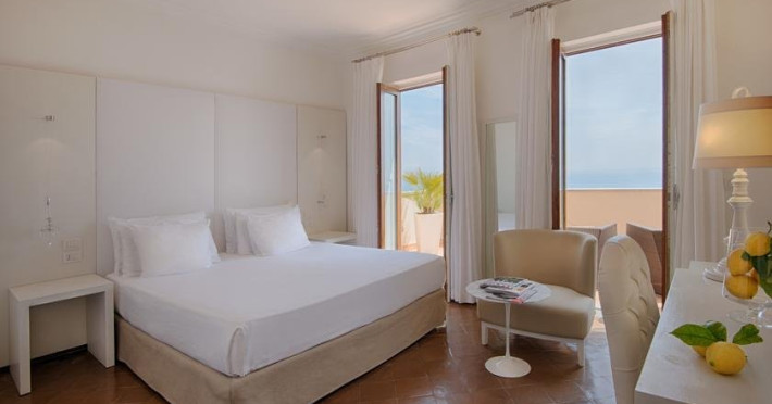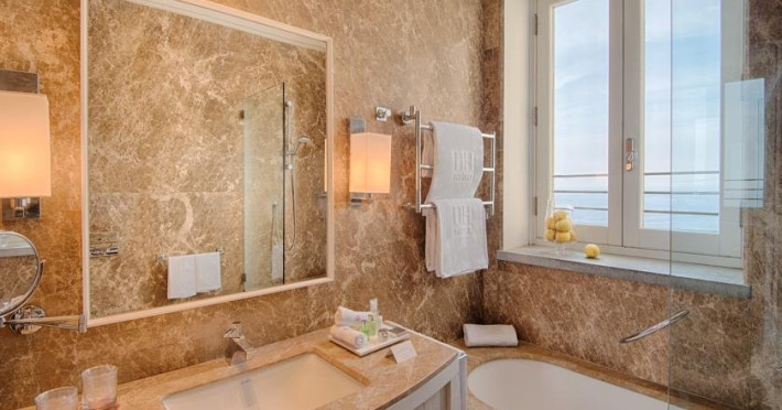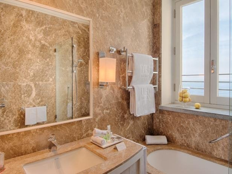 podea cu gresie, baie cu marmura, vedere la mare, TV cu ecran plat, minibar, meniu de perne, baie privata, uscator de par, articole de toaleta