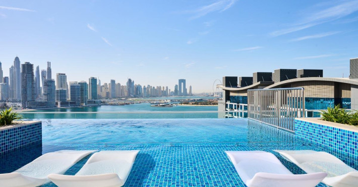 NH Dubai The Palm offers breathtaking views of the Arabian Sea, Marina skyline, the iconic Burj Al Arab and the Dubai Eye. A premium hotel will be situated in the South tower of the Seven Palm project and the residences are located in the North tower. The towers are joined at the top by a stunning one of a kind infinity pool, with food & beverage outlets catering to the wants and needs of residents and visitors alike. Located on Dubai’s Palm Jumeirah, a global landmark, NH Dubai The Palm will be part of Seven Hotel & Apartments , a mixed-use development consisting of a hospitality tower and a residential tower. The hotel will be easily accessible on The Palm’s main trunk, adjacent to the largest mall on The Palm and close to the Palm Fountain at The Pointe, which launched recently as the world’s largest fountain. Dubai’s other key tourist attractions including the Burj Khalifa, Dubai Mall and Dubai Marina are all within easy reach.The new 14-storey property will offer 227 hotel guest rooms and suites, in addition to 306 serviced apartments. Facilities will include multiple restaurants and bars, three spa treatment rooms, a kids’ club and four meeting rooms. For the active, there will be a gym fully-equipped with the latest equipment. In addition, the hotel will be home to a spectacular rooftop infinity pool, creating the perfect ‘Insta’ spot.NH Dubai The Palm offers breathtaking views of the Arabian Sea, Marina skyline, the iconic Burj Al Arab and the Dubai Eye. A premium hotel will be situated in the South tower of the Seven Palm project and the residences are located in the North tower. The towers are joined at the top by a stunning one of a kind infinity pool, with food & beverage outlets catering to the wants and needs of residents and visitors alike. Located on Dubai’s Palm Jumeirah, a global landmark, NH Dubai The Palm will be part of Seven Hotel & Apartments , a mixed-use development consisting of a hospitality tower and a residential tower. The hotel will be easily accessible on The Palm’s main trunk, adjacent to the largest mall on The Palm and close to the Palm Fountain at The Pointe, which launched recently as the world’s largest fountain. Dubai’s other key tourist attractions including the Burj Khalifa, Dubai Mall and Dubai Marina are all within easy reach.The new 14-storey property will offer 227 hotel guest rooms and suites, in addition to 306 serviced apartments. Facilities will include multiple restaurants and bars, three spa treatment rooms, a kids’ club and four meeting rooms. For the active, there will be a gym fully-equipped with the latest equipment. In addition, the hotel will be home to a spectacular rooftop infinity pool, creating the perfect ‘Insta’ spot.