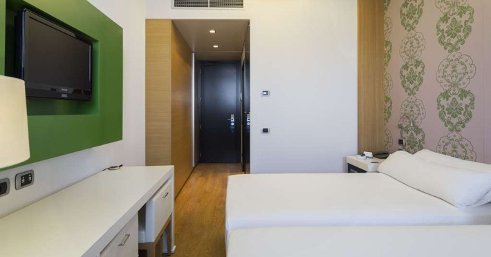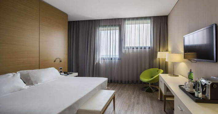 This hotel has a convenient location within the Fiera Milano Expo, perfect for delegates or visitors to conferences and fairs. Its two towers of minimalist design offer the greatest elegance and comfort. The hotel provides easy access to most of the citys tourist and business attractions. Milan City Centre is 13 km and Malpensa Airport 40 km away. It has conference rooms with capacity for 140 people. The hotel has 2 unique restaurants in its style, in an elegant but informal setting, ideal for social or business meals, guests may enjoy a snack or a beverage while surfing the internet. The Air-conditioned rooms have a contemporary chic design yet minimalist with panoramic views. The rooms are fitted with the expected features to make the visitorâs stay s pleasurable one including parquet floors, tea and coffee making facilities and a private bathroom with toiletries. For guests arriving by own vehicle there is an onsite car park with a surcharge. NHDatorita dinamicitatii domeniului disponibilitatea ofertelor se modifica de la un moment la altul. De aceea ofertele sunt valabile in limita locurilor disponibile. Agentia nu este responsabila pentru eventualele neconcordante care pot aparea intre informatiile privind tarifele si alte detalii din site si informatiile primite in agentie. In aceste cazuri vor avea prioritate, intotdeauna, informatiile primite in agentie.