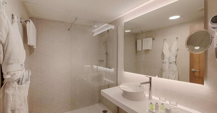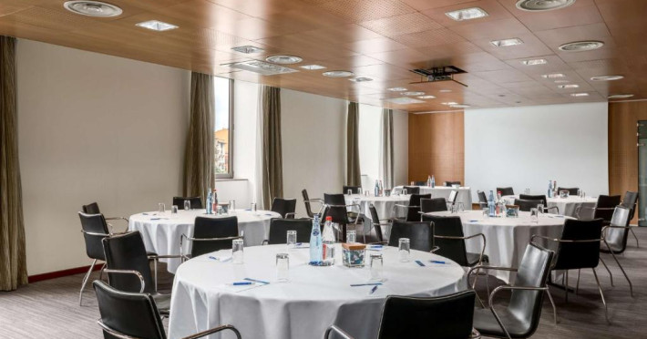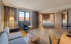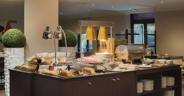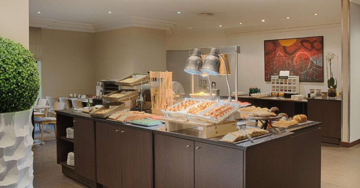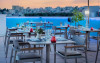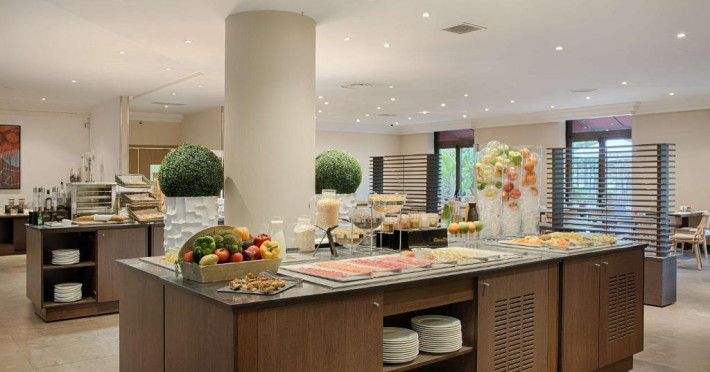 Restaurantul hotelului servește preparate mediteraneene rafinate, iar barul este locul ideal pentru un cocktail după o zi de explorare. Facilitățile business includ săli de conferințe moderne și un centru de afaceri complet echipat.