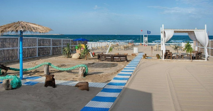 Facilitati camera: Hotelul dispune de 124 de camere repartizate pe 2 etaje. Moderne si confortabile, atat camerele standard cate si cele superioare au balcon privat (unele camera superioare au vedere la mare iar altele la gradina) si dispun de unitate de climatizare, telefon, TV satelit, WI-FI (contra cost), baie cu dus si uscator de par.