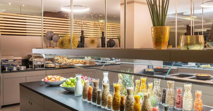 Dimineața, oaspeții pot savura un mic dejun bogat tip bufet. La mesele de pranz și cină, restaurantul Mundo servește mancăruri tradiționale și internaționale, la tarif redus pentru oaspeții hotelului. Pentru sosirile sau plecările devreme, hotelul oferă mic dejun devreme.