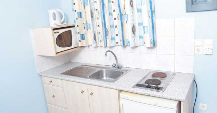Camerele sunt dotate cu băi cu duș, chicinetă cu plită, cană electrică, mini-frigider, cuptor cu microunde, TV, seif (5 EUR/zi), AC (5 EUR/zi)..