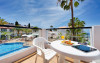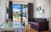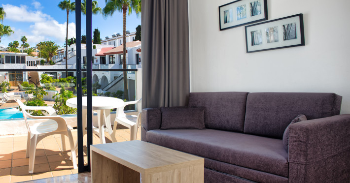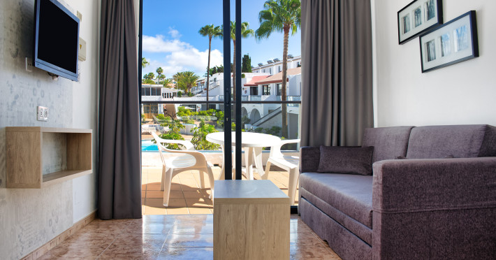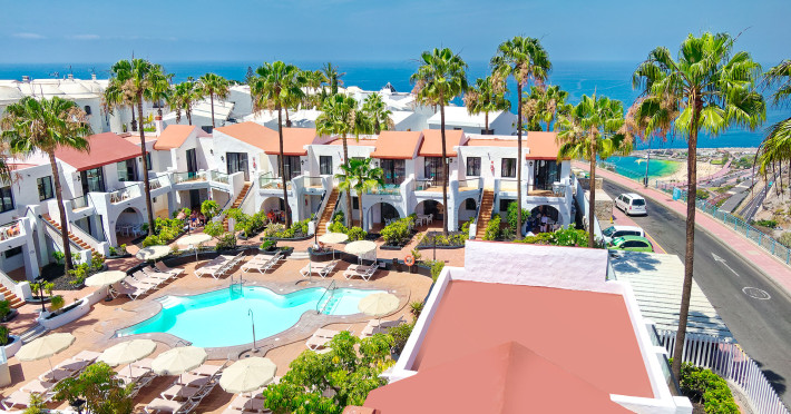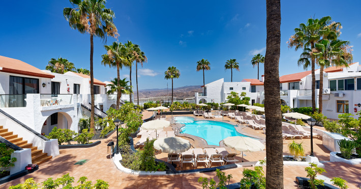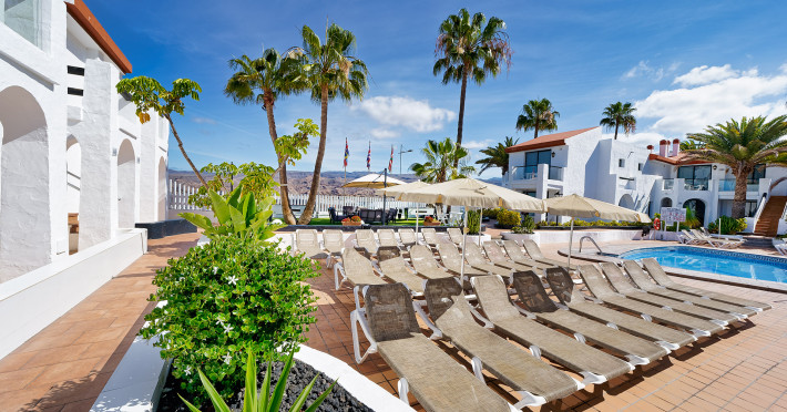 The apart hotel Bungalows Nido del Aguila is located approximately 1 km from a sandy beach. Shops are right on your doorstep, a supermarket is around 300 m away. Nearby there is a disco which offers entertainment in high season. The beach is patrolled by a lifeguard and awarded a blue flag. Near the beach there is a promenade where you can go for a stroll. The hotel is equipped with a 24h reception, a lobby, Wi-Fi (for a fee), showers and changing rooms, parking spaces (for a fee) as well as a TV lounge. In the outdoor area you will find a garden as well as a heated pool that is open seasonally (open all year), where sun loungers, sun umbrellas and pool towels are available for free. For children there is also a children's pool. Furthermore, outside you can find a sun terrace. You can store your valuables in the safe, and your luggage in the hotel`s storage room. For very young guests, cots can also be provided. There is also a laundry service available at an additional cost to customers. If necessary, you can contact the medical centre (for a fee). Guests at the accommodation can get a wake-up call from the hotel personnel. If you want to explore the holiday region, you can use the car and motorbike rental service close to the hotel. At the reception, tickets are offered for excursions in the area. The hotel requires that all guests pay a deposit upon arrival. Catering Breakfast (08,30 A 10,00 hrs) is offered from the buffet. Lunch (13,00 A 15,00 hrs) and dinner (19,00 A 21,00 hrs) are also served from the buffet. For the meals, there are a bar as well as the pool bar (open from 10,30 A 23,30). Distances