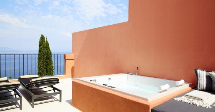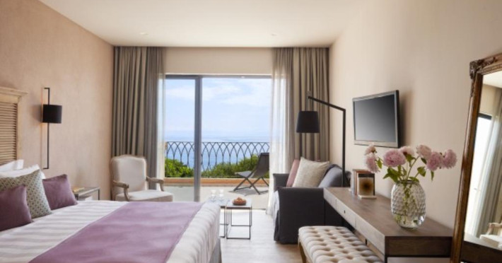 Hotelul este situat pe plaja si la 16 km de Corfu Town, intr-o oaza de verdeata, intr-un decor mirific. Adult only, hotelul este destinat cuplurilor, plaja privata, piscina cu terasa cu vedere la mare precum si centrul spa, ofera toate conditiile pentru un sejur relaxant la malul marii.