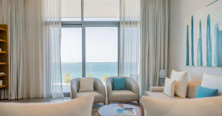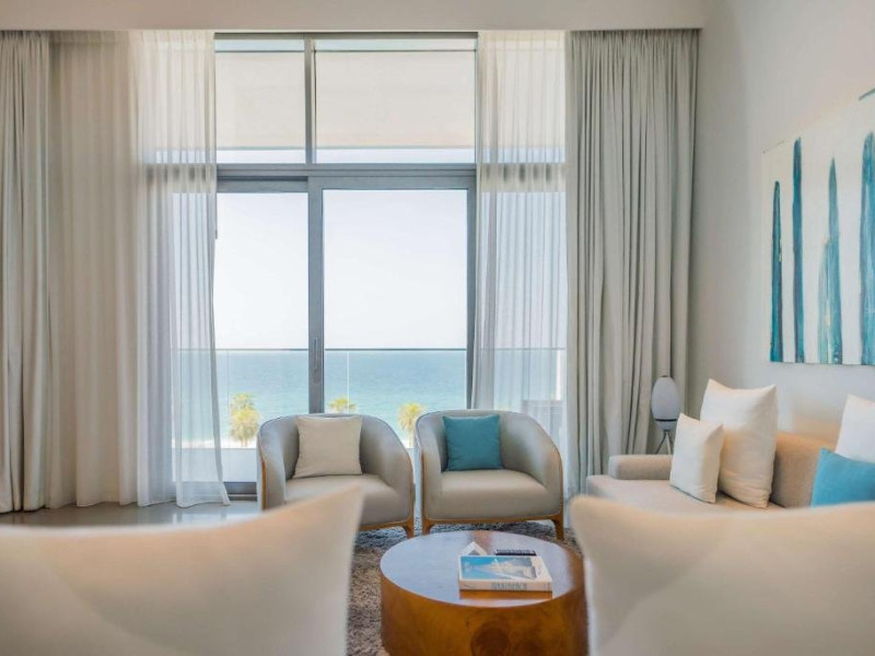 Dotari camera: Nikki Beach Resort & Spa Dubai pune la dispozitie camere, suite si vile cu vedere la Golful Arabiei sau inconjurate de gradini exotice. Unitatile de cazare sunt amenajate in stil modern, cu accente relaxante si luxoase, mobilier elegant, spatii de living si terase sau balcoane private.