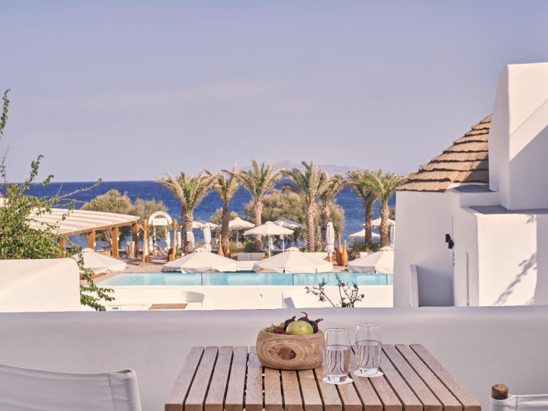 Nikki Beach Resort & Spa Santorini is set on the beachfront in Agia Paraskeyi, on the beautiful island of Santorini 9.7 km from the Archaeological Museum of Thera. The Museum of Prehistoric Thera is 8.8 km from Nikki Beach Resort & Spa Santorini, while Oia is 19.3 km from the property. The nearest airport is Santorini International Airport is 4.3 km away. Note***** Please note that on specific days, private events will take place on the property premises and some venues might be closed or guests will have limited access for a few hours. Guests should expect a high level of noise but extra precautions will be taken for the music to play within the acceptable/permissible decibel limits. Please contact the property for more info. Families with children are very welcome to the Resort. Children are allowed to use the beach club facilities when escorted. Children are allowed to use the main pool of the hotel ONLY when escorted and under supervision. Children are not allowed to use the following areas of the Resort: Roof Top Bar, Spa and Gym. Maximum room occupancy and extra bed additions to be confirmed by the Resort. We would like to inform you that there are no activities or facilities especially designed for our little friends. NOTE*** FOR S2025 The climate resilience tax is 10€ per room/ per night, to be paid on arrival. NOTE*** FOR S2025 Beds and Cabanas have a fee and a minimum spending package for all guests including hotel guests. For non-hotel guests, there is a rental fee for the use of sunbeds at the beach. Children under the age of 12 are not allowed in the Beach Club Pool area.Location Nikki Beach Resort & Spa Santorini is set on the beachfront in Agia Paraskeyi, on the beautiful island of Santorini 9.7 km from the Archaeological Museum of Thera. The Museum of Prehistoric Thera is 8.8 km from Nikki Beach Resort & Spa Santorini, while Oia is 19.3 km from the property. The nearest airport is Santorini International Airport is 4.3 km away. Your Accommodation Perfectly placed for accessing many wonders of the island,like Oia and Fira .Offering easy access to Santorini International Airport, Ancient Thera and the Museum of Prehistoric Thera, this 5 star Santorini lifestyle beachfront resort features spectacular views over the Aegean Sea. Overseeing a long beach with black grey sand and crystal clear waters . The island of Santorini captures the eyes of the visitor with its idyllic atmosphere and offers breathtaking views almost to the point of a cliché. Stylishly outlined rooms and suites, their relaxing colors in combination with the energy variations of sounds and lighting, create a life time experience. Guests are invited to relax among the cutting edge architecture whilst enjoying one of our signature cocktails and soaking up the Cycladic sun. The Hotel features a swimming pool various bars and restaurants as well as many luxurious amenities Rooms A collection of 62 stunning rooms and suites,10 of which offer a private Jacuzzi and 37 feature a private pool among additional top line facilities. All rooms feature: Air conditioning, Balcony/Terrace, Bathrobes & Slippers, Bathroom amenities, Hair Dryer, Minibar, Safe, Wireless internet connection, Satellite TV, Telephone, Kettle. Number of Rooms 62 Free Sports and Wellness Swimming pool, Outdoor furniture, Beachfront, Beach area,Terrace Sports and Wellness for a Fee Diving Off-site, Cycling Off-site, Fishing Off-site, Beauty Services, Wellness Services Entertainment / Activities Themed dinner nights, Evening entertainment (all extra charge) For Children Children Services Meals / Drinks Nikki Beach Santorini Beach Club: Global Nikki Cuisine, Local Flavors & refreshing drinks.The world renowned Nikki Beach Club combines the elements of entertainment, dining,music, fashion, into one. Café Nikki All Day Dining Global Nikki Cuisine, Comfort food. Café Nikki Santorini is an all day urban bistro with a focus on light, fresh and creative presentations inspired by international and local cuisine. “Soul Lounge” Roof Top Bar: Drinks, Signature Cocktails , Shisha, Cigar, Greek style Tapas, Unique summer nights on the top floor of the resort. Where refreshing drinks and Signature cocktails blend with Shisha experience. "ESCAPE" restaurant local flavors mixed with Peruvian recipes. One of the best outdoor spots of Nikki Beach Santorini where traditional Greek cuisine is blended with unique Peruvian style recipes in a breath taking setting. Entertained by the sounds of waves crashing and the fresh ocean breeze. Official Category ***** LUXNikki Beach Resort & Spa Santorini is set on the beachfront in Agia Paraskeyi, on the beautiful island of Santorini 9.7 km from the Archaeological Museum of Thera. The Museum of Prehistoric Thera is 8.8 km from Nikki Beach Resort & Spa Santorini, while Oia is 19.3 km from the property. The nearest airport is Santorini International Airport is 4.3 km away. Note***** Please note that on specific days, private events will take place on the property premises and some venues might be closed or guests will have limited access for a few hours. Guests should expect a high level of noise but extra precautions will be taken for the music to play within the acceptable/permissible decibel limits. Please contact the property for more info. Families with children are very welcome to the Resort. Children are allowed to use the beach club facilities when escorted. Children are allowed to use the main pool of the hotel ONLY when escorted and under supervision. Children are not allowed to use the following areas of the Resort: Roof Top Bar, Spa and Gym. Maximum room occupancy and extra bed additions to be confirmed by the Resort. We would like to inform you that there are no activities or facilities especially designed for our little friends. NOTE*** FOR S2025 The climate resilience tax is 10€ per room/ per night, to be paid on arrival. NOTE*** FOR S2025 Beds and Cabanas have a fee and a minimum spending package for all gue