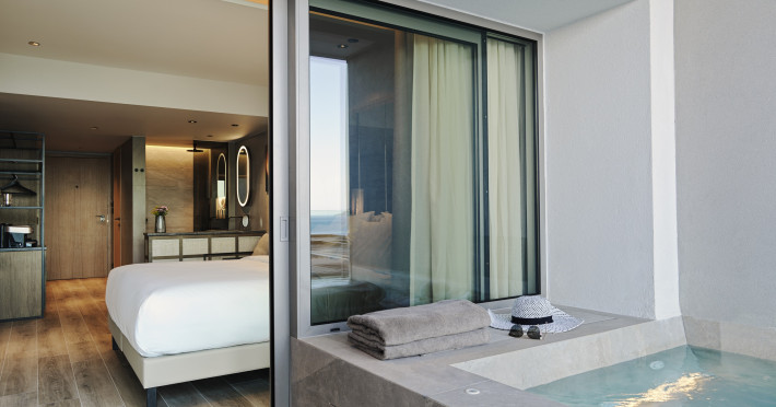 NIKO Seaside Resort MGallery is beautifully simple yet masterfully designed to exude elegance and sophistication. With its perfectly balanced blend of modernity and tradition, this upscale adults only retreat offers the ultimate Cretan hospitality experience, right next to the vibrant city centre of Agios Nikolaos. It is a five star adults only resort with modern, minimalist architecture that first opened its doors in April 2022. The water is the prevailing element of the resort with over 80 plunge pools and private pools as well as two large outdoor infinity pools.Brilliantly situated to offer expansive sea views of the Mirabello Bay, the resort is only a few steps away from the heart of Agios Nikolaos and the unique treasures of Cretan history and culture.