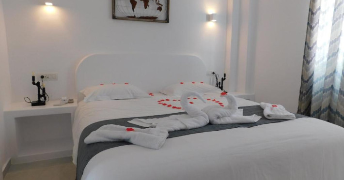 Cazare confortabilă: Hotelul Nikolas din Karterados oferă camere confortabile cu aer condiționat, băi private și facilități moderne. Fiecare cameră include un aparat de ceai și cafea, birou și articole de toaletă gratuite.