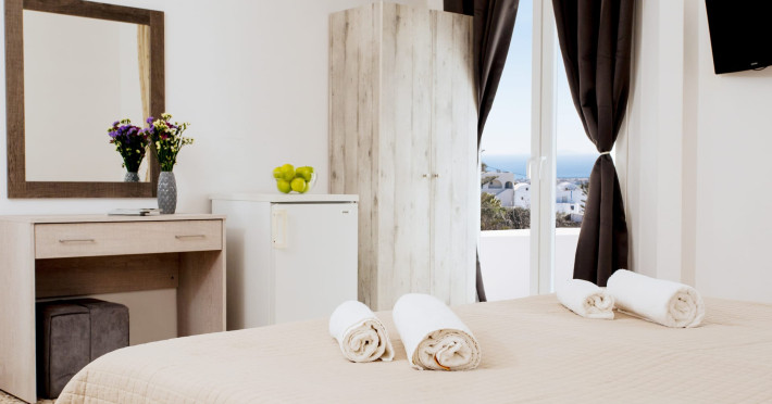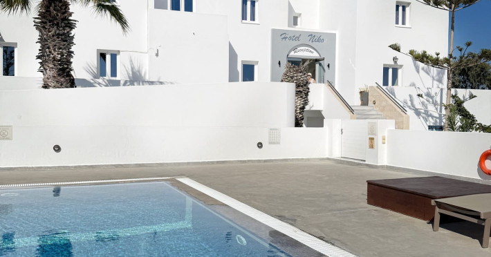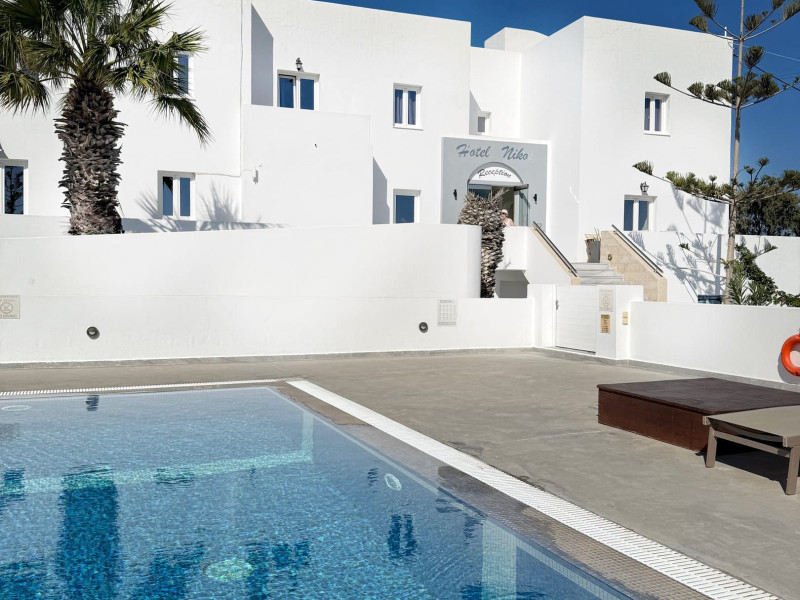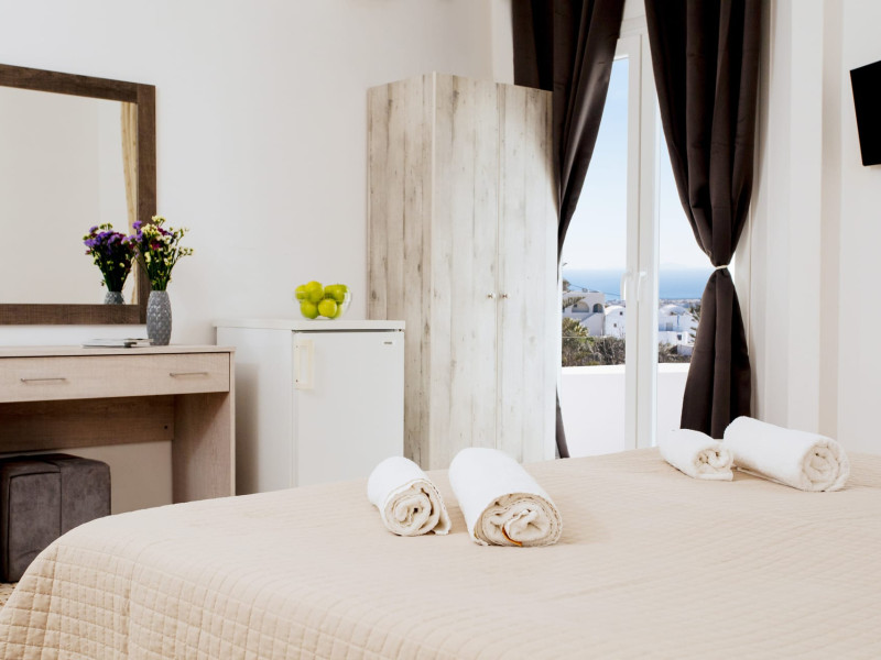 The Cycladic-style Nikos Hotel is located in Karterados Village of Santorini, within 1 km from the lively Fira capital. It offers free Wi-Fi in public areas and air-conditioned rooms with a balcony overlooking the garden.rooms of Nikos are equipped with a TV, a telephone and a fridge. Each unit includes a private bathroom with shower.Guests can start their day with a continental breakfast served daily at the dining area. Restaurants, bars and shops can be found within a walking distance from the property.Ormos Athinios Port lies within 8 km from Nikos Hotel, while Santorini National Airport is at 5 km. Staff at the front desk can arrange car rental to explore famous places, such as Oia Village at 13 km and Exo Gialos Beach at 4 km. Free private parking is possible on site.The Cycladic-style Nikos Hotel is located in Karterados Village of Santorini, within 1 km from the lively Fira capital. It offers free Wi-Fi in public areas and air-conditioned rooms with a balcony overlooking the garden.rooms of Nikos are equipped with a TV, a telephone and a fridge. Each unit includes a private bathroom with shower.Guests can start their day with a continental breakfast served daily at the dining area. Restaurants, bars and shops can be found within a walking distance from the property.Ormos Athinios Port lies within 8 km from Nikos Hotel, while Santorini National Airport is at 5 km. Staff at the front desk can arrange car rental to explore famous places, such as Oia Village at 13 km and Exo Gialos Beach at 4 km. Free private parking is possible on site.