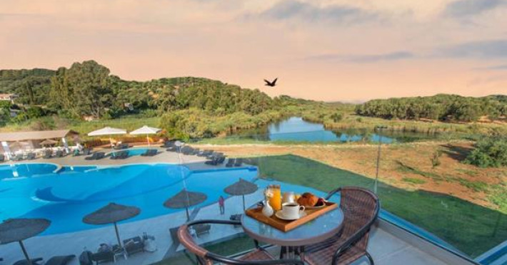 The Laguna Holiday Corfu is located in St. Spyridon, Perithia, in the north side of Corfu between Kassiopi and Acharavi villages. Over the bridge at the western end of St. Spiridon beach there is the Antinioti lake. The Hotel is a newly built palace with modern touches in a breathtaking scenery between a sandy beach and the lake. Rest assured that accommodation in this hotel has been designed to welcome you and your family in comfort, luxury and style. For one, two children or adults of any age, the hotel offers double rooms, superior rooms, two-bedroom family rooms, Junior suites. On the distance of 50 meters is one of the most beautiful sandy beaches of Corfu with crystal clear waters across a long bay.Datorita dinamicitatii domeniului disponibilitatea ofertelor se modifica de la un moment la altul. De aceea ofertele sunt valabile in limita locurilor disponibile. Agentia nu este responsabila pentru eventualele neconcordante care pot aparea intre informatiile privind tarifele si alte detalii din site si informatiile primite in agentie. In aceste cazuri vor avea prioritate, intotdeauna, informatiile primite in agentie.