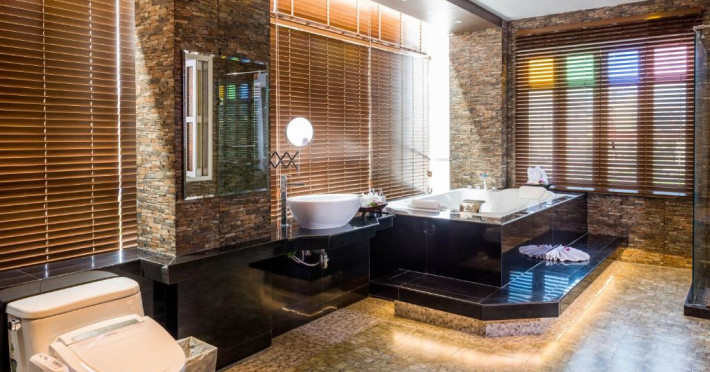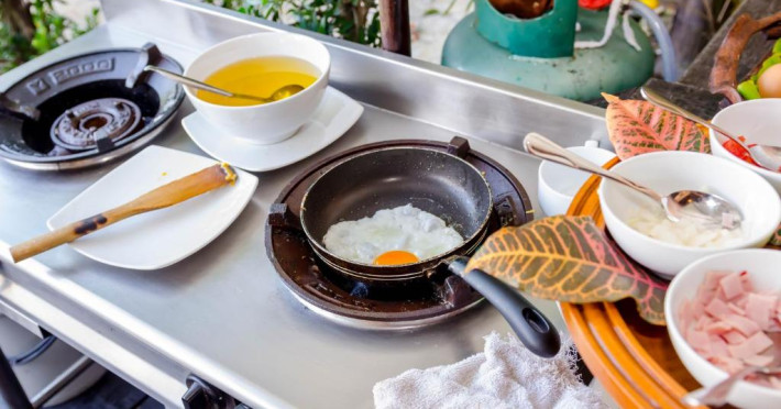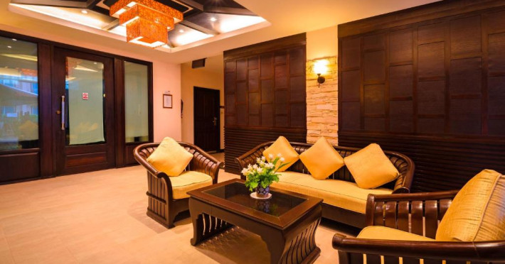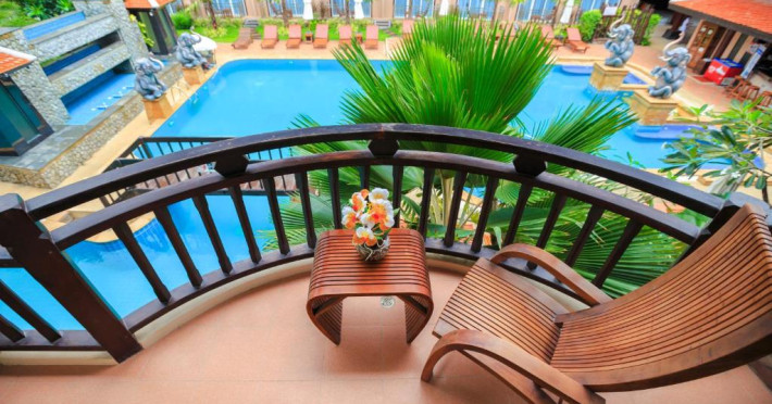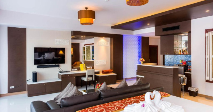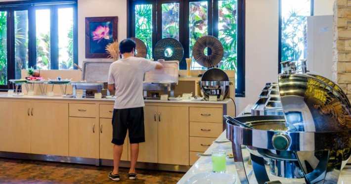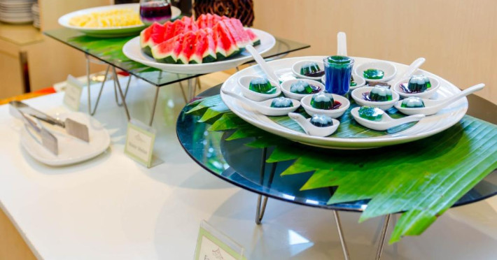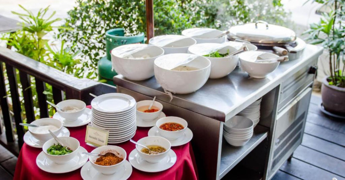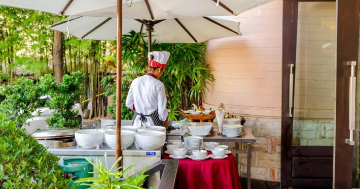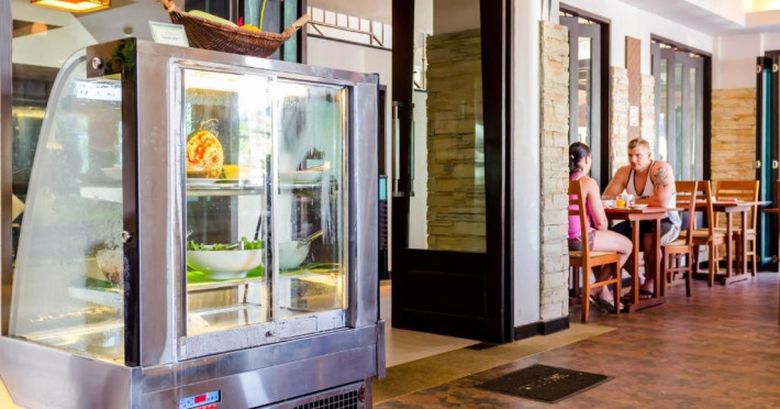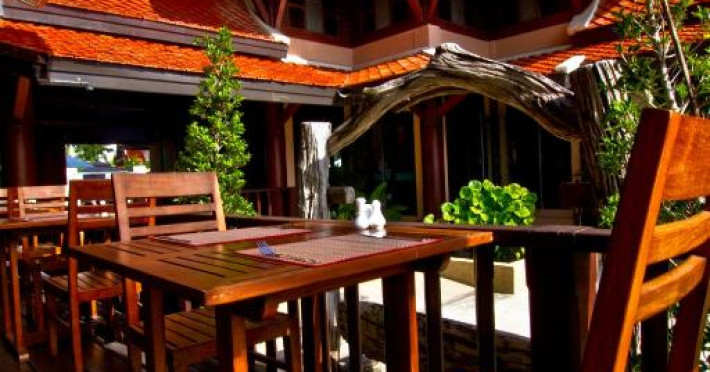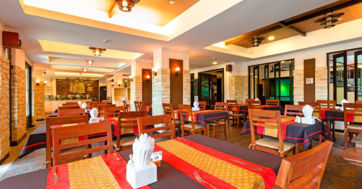 Restaurantul oferă preparate thailandeze și internaționale. Barul oferă cocteiluri care pot fi savurate langă piscină.