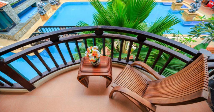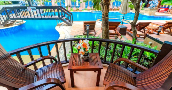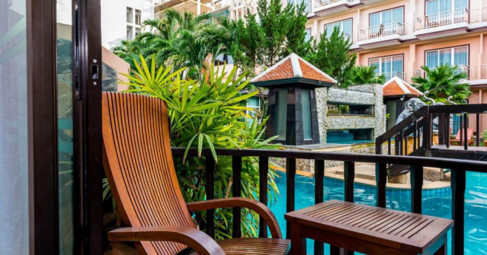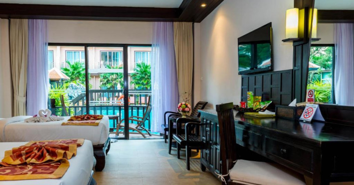 Camerele de la Ni Resort, Patong Beach - SHA Plus au mobilier din lemn și balcon sau verandă privată cu vedere la oraș sau la piscină. Fiecare cameră oferă TV prin satelit, cutie de valori și facilități de ceai/cafea. Baia privată include cadă și duș.