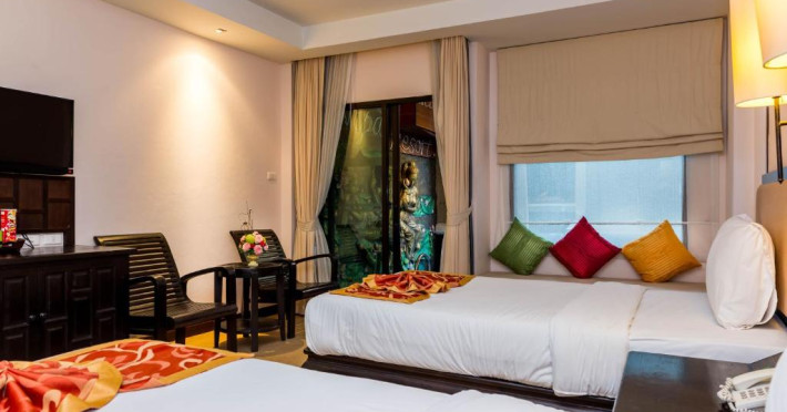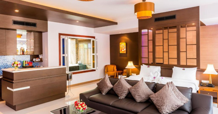 Nipa Resort, Patong Beach - SHA Plus din Phuket se află la doar o scurtă călătorie cu mașina de strada plină de viață Bangla și la 9 minute de mers pe jos de plaja Patong. Aceasta combină arhitectura thailandeză cu confortul modern. Oferă și serviciu in aer liber, restaurant de transfer gratuit la plaja Patong.