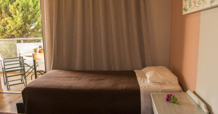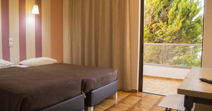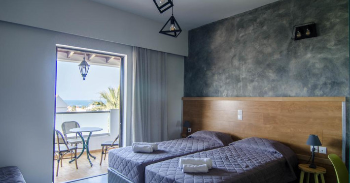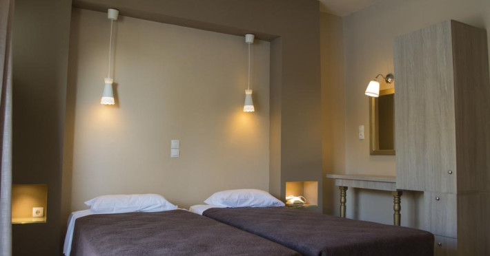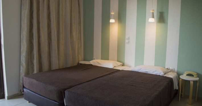 Sunt disponibile 27 camere. Camerele confortabile de la Nireas Hotel au pardoseală de gresie/ marmură, aer condiționat, Tv cu canale prin satelit și seif. În camere există baie cu cadă sau duș prevăzută cu foehn. Fiecare cameră dispune de mașină pentru preparare cafea sau ceai și fierbător Unele camere au balcon cu vedere la mare sau la piscină. Oaspeții au acces gratuit la serviciul Wi-fi în camere. Curățenia in cameră se face zilnic. Toate camerele spațioase de la Nireas Hotel au zonă de relaxare cu canapea, ceea ce oferă un plus de confort. Fiecare unitate de cazare include o chicinetă utilată cu frigider, plită de gătit și ustensile de bucătărie. De asemenea, sunt disponibile o zonă de luat masa și un cuptor cu microunde. Proprietatea oferă camere pentru familie cu o suprafață mai mare și un număr mai mare de paturi față de cele standard. Se pot rezerva de asemenea camere pentru nefumători.