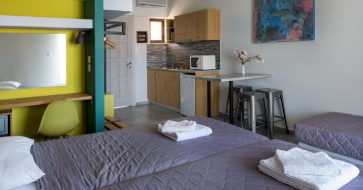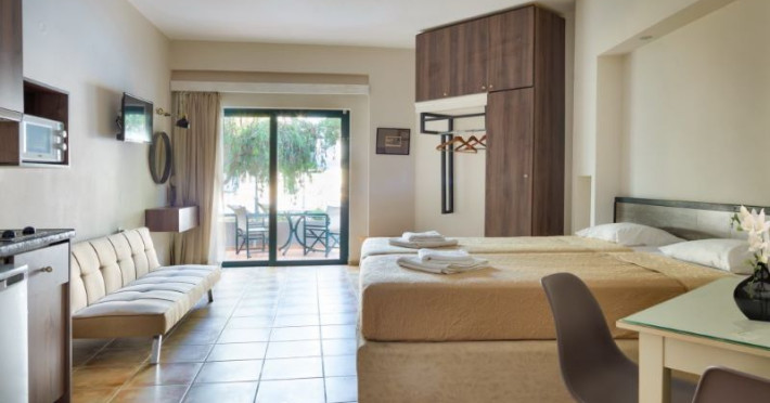Hotelul Nireas se află înconjurat de grădini luxuriante, oferind o atmosferă deosebit de plăcută. Cu un total de 29 de camere, acesta impresionează prin locația confortabilă, stilul tradițional și camerele spațioase și confortabile, dotate cu chicinetă.Localizare