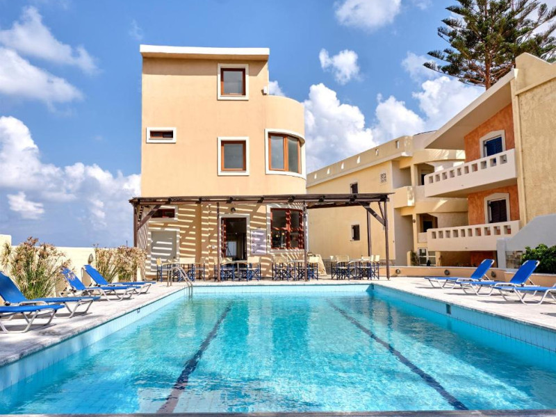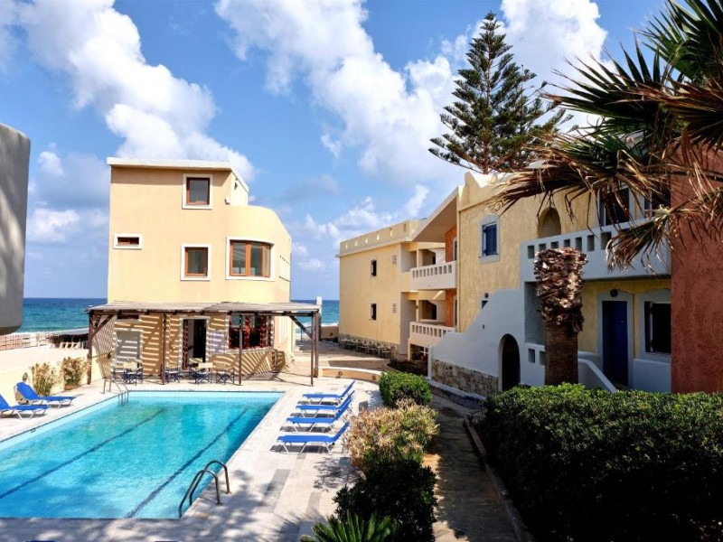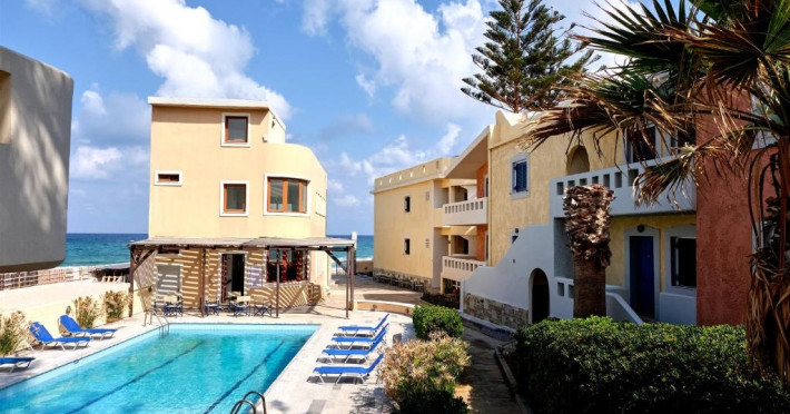 Niros Beach is a complex of 22 furnished apartments located right in front of the beach in the area of Gournes, Heraklion, Crete. It consists of five buildings of furnished ground floor and first floor apartments, main building with reception area, lounge, snack-bar, swimming pool and surrounding garden. Due to its location and configuration it is suitable for comfortable, flexible and economical holidays.,
