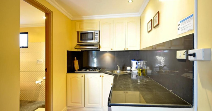 Apartamentele sunt complet mobilate și includ aer condiționat, zonă de living spațioasă, bucătărie bine utilată și balcon privat cu vedere la piscină. De asemenea, au TV prin cablu și seif personal.