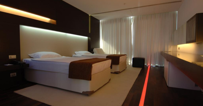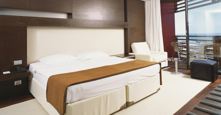 Hotelul are un numar total de 579 camere: 435 camere standard (32-36mp, un dormitor, o baie, majoritatea cu paturi twin, max 2+2pax), 72 camere interconectate (doua camere standard cu usa intre ele, max 4pax), 18 camere family (56mp, o camera spatioasa cu zona de relaxare si o baie, max 4pax), 16 Junior Suite (51mp, dormitor + colt de living), 30 Suite (70mp, un dormitor, un living, doua bai) si camere pentru persoane cu dizabilitati. Toate camerele sunt dotate cu balcon, baie privata cu cada si uscator de par, aer conditionat centralizat (cu program in functie de conditiile meteo), telefon, mini bar (bauturi racoritoare realimentat zilnic), seif, TV satelit si canale de muzica, balcon.