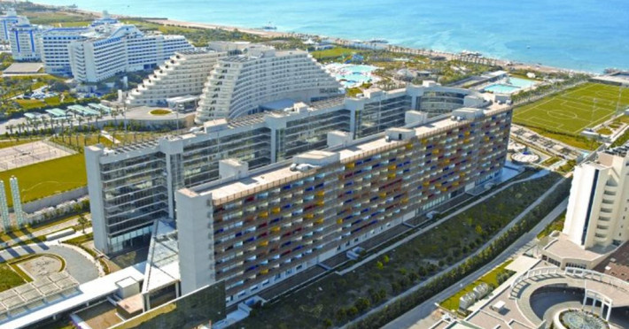Kervansaray Lara 5* este decorat in stilul hi-tech, dispune de propria plaja cu nisip si ponton, fiind recomandat pentru vacante cu familia si pentru organizarea intalnirilor de afaceri. Hotelul Kervansaray Lara 5* are o suprafata totala de 110 000 mp si este amplasat pe malul marii.Descriere