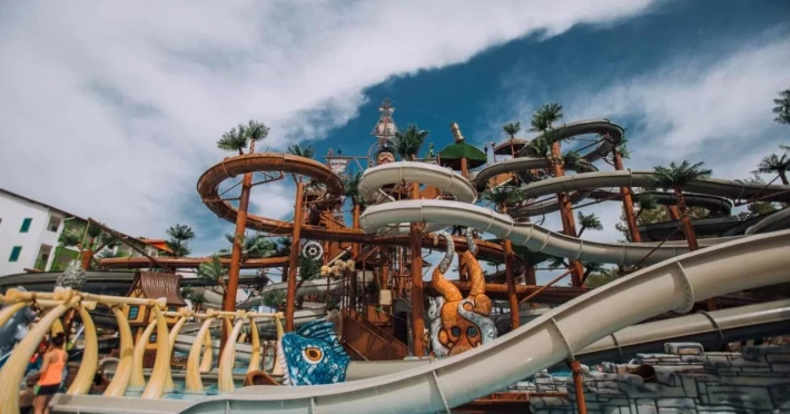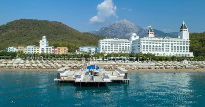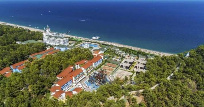 Localizare Hotelul este situat la 75 km de aeroportul orasului Antalya, la 20 km de orasul Kemer, pe malul marii. Facilitati hotel Hotelul ofera restaurant principal, restaurant Fellini - gratis, deschis 21 ore din 24; 9 restaurante a la carte: asiatic, pescaresc, mexican, italian, grecesc, latino-american, de fructe de mare si restaurantul Dolce Vita , meniu dietetic, 14 baruri (majoritatea bauturilor gratis, mai putin cele black label - premium), 5 piscine exterioare (piscina principala cu sectiune pentru copii, o piscina cu apa de mare, cu incalzire, piscina aqua park), 2 piscine interioare (una cu apa de mare in SPA, contra cost, cealalta gratuita), 4 tobogane de apa, cabinet medical, Wellness & centru SPA, coafor, parcare, centru comercial. Facilitati camera Toate camerele sunt dotate cu baie proprie cu cadă de baie, TV prin satelit și DVD player, aer condiționat și balcon privat.Localizare