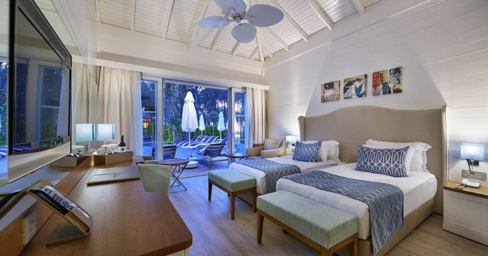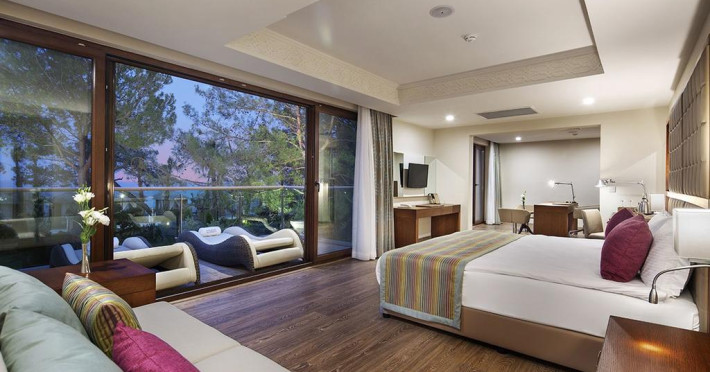 Hotelul este localizat in statiunea Beldibi, la 36 de km de aeroportul din Antalya si la 16 km de orasul Kemer. Acest complex construit in 2014 se intinde pe o suprafata foarte mare cu verdeata, piscine exterioare si spatii de relaxare. Cazarea se face in 2 cladiri principale de 3 nivele, 11 cladiri in gradina si 122 de vile cu 2 sau un nivel. Acest hotele este inconjurat de verdeata si are o plaja privata cu nisip si pietris, 3 debarcadere si un centru SPA. Turistii pot savura preparate locale si internationale in restaurantul hotelului sau diferite bauturi in barul de la piscina sau de pe plaja. Localizare Resortul este situat intr-o padure de pini, la 26 km distanta de Antalya, 16 km de Kemer si la 36 km de sroportul international Antalya. Facilitati hotel Hotelul pune la dispozitia turistilor restaurant principal, 8 restaurante a la carte (mexican, sea food, mediteranean, rusesc, otoman, steak house, asiatic, exclusive a la carte), baruri, cafe turca, patiserie, fast food, gozleme, piscine exterioare si interioare pentru adulti si copii, piscina cu tobogane, programe de animatie, tenis de masa, tenis, fitness, centru SPA, jocuri de societate, miniclub 4-12 ani “Crispy kids Club”, internet wi-fi. Facilitati camera Camerele sunt dotate cu telefon, TV LCD satelit, minibar, sr conditionat centralizat, seif, baie cu dus, uscator de par, halat de baie, papuci, balcon, internet WI-FI.Localizare