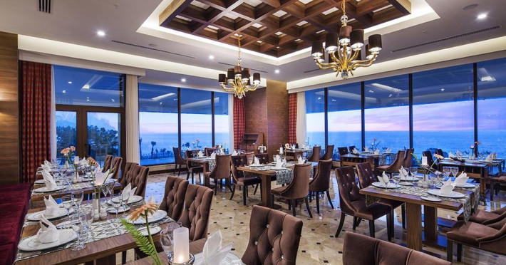 Hotelul pune la dispozitia turistilor restaurant principal, 8 restaurante a la carte (mexican, sea food, mediteranean, rusesc, otoman, steak house, asiatic, exclusive a la carte), baruri, cafe turca, patiserie, fast food, gozleme, piscine exterioare si interioare pentru adulti si copii, piscina cu tobogane, programe de animatie, tenis de masa, tenis, fitness, centru SPA, jocuri de societate, miniclub 4-12 ani “Crispy kids Club”, internet wi-fi.
