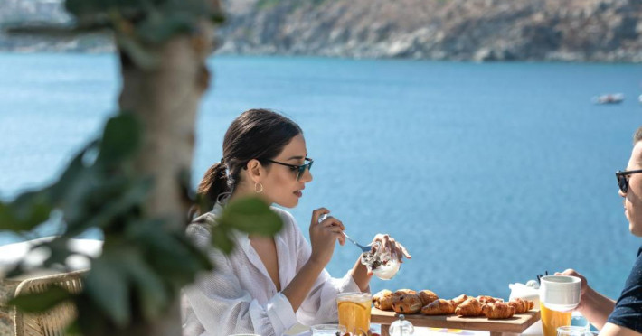 La Nissaki Boutique oaspeții au la dispoziție un restaurant care servește mâncare à la carte. Preparate din bucătăria grecească așteaptă să fie degustate în fiecare zi. Masa poate fi servită atât în interior, cît si în aer liber, pe terasă, în funcție de vreme. Oaspeţii pot avea diverse băuturi răcoritoare sau alcoolice la bar.