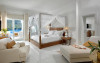 Camerele de la Nissaki Boutique Hotel au pereți văruiți în alb și gresie din piatră colorată și sunt bine amenajate și confortabile, fiecare cu TV prin satelit, articole de toaletă, CD și DVD player și balcon privat cu vedere la mare.