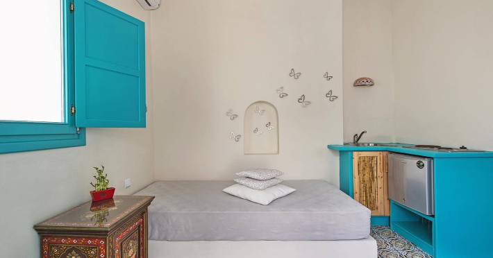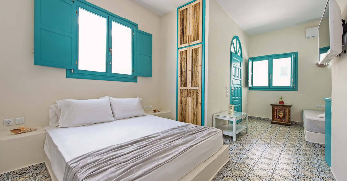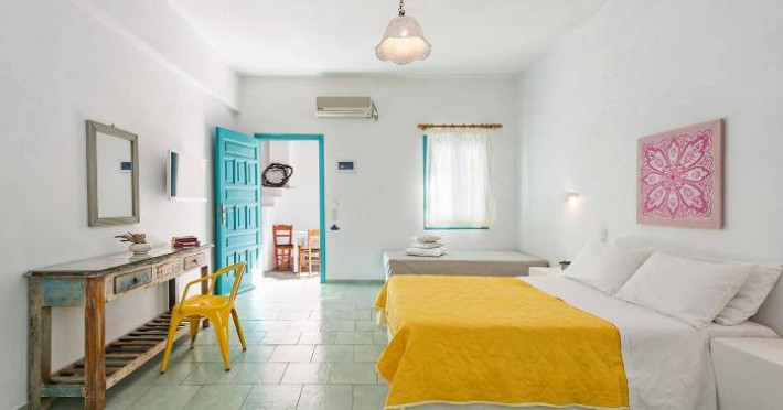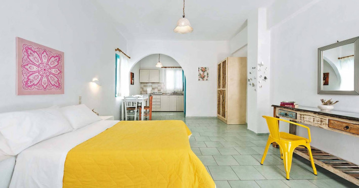 Sunt disponibile 15 camere. Camerele luminoase de la Nissia Apartaments sunt dotate cu aer condiționat, Tv și seif. Unele camere au balcon cu vedere la mare, unde oaspeții pot admira apusul sau răsăritul soarelui. Oaspeții au la dispoziție serviciul de room service pentru a servi masa sau diverse băuturi. În camere există baie cu duș, foehn, precum și halate de baie și papuci. Oaspeții au acces gratuit la serviciul Wi-fi în camere. Curățenia in cameră se face zilnic. Fiecare unitate de cazare include o chicinetă utilată cu frigider și ustensile de bucătărie. Proprietatea oferă camere pentru familie cu o suprafață mai mare și un număr mai mare de paturi față de cele standard. Se pot rezerva de asemenea camere pentru nefumători.