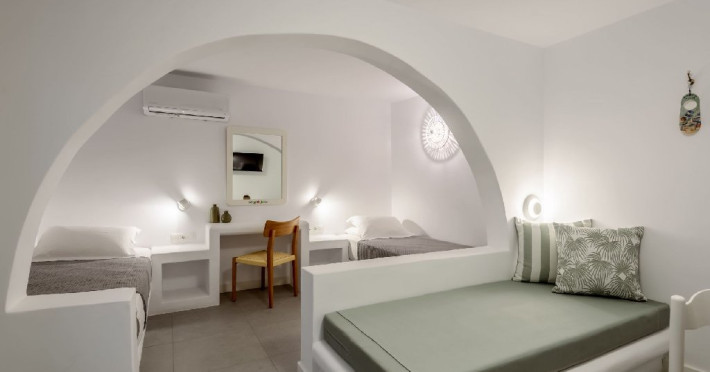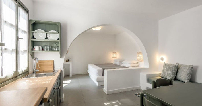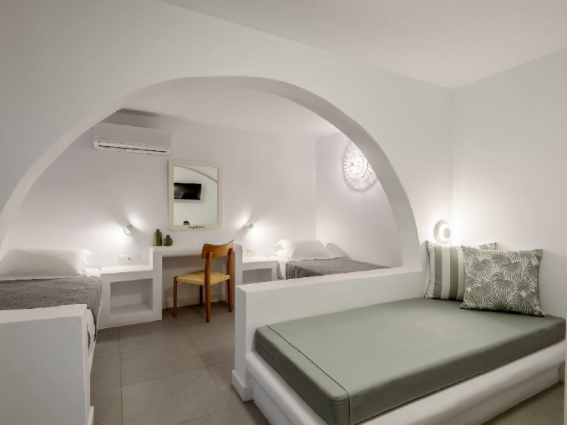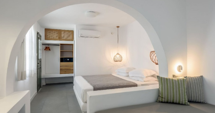 Dotari camera: Studiourile si apartamentele sunt amenajate simplu si elegant si dispun de balcon cu vedere spre gradina. Toate unitatile de cazare sunt dotate cu aer conditionat, Wi-Fi gratuit de mare viteza, televizor, seif si chicineta complet utilata. Baia privata este prevazuta cu dus sau cada si articole de toaleta. Spatiile sunt concepute pentru a oferi confort si relaxare dupa o zi petrecuta la plaja sau in explorarea insulei.