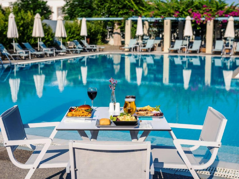 Facilitati hotel: Complexul dispune de piscina exterioara cu sezlonguri si umbrele, bar la piscina unde sunt servite gustari si bauturi racoritoare, precum si zona de mic dejun. Oaspetii beneficiaza de prosoape de plaja, acces Wi-Fi gratuit in zonele publice, carti pentru lectura si o atmosfera placuta, completata de muzica ambientala. Gradina bine intretinuta ofera un cadru ideal pentru relaxare, iar personalul este disponibil pentru recomandari si informatii despre atractiile locale.