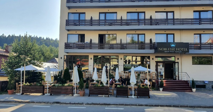 Restaurant cu 55 locuri, unde se servesc micul dejun, pranzul si cina in regim bufet sau a la carte. In zilele de vara turistii se pot bucura de soare pe terasa hotelului. Restaurantul Noblesse, cochet, calduros, cu meniu a la carte diversificat te va cuceri cu preparatele delicioase ce poarta semnatura unor tineri pasionati de gastronomie