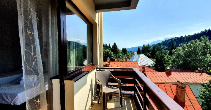Privelistea din camere este superba, in special in sezonul de iarna. Panorama asupra muntilor Bucegi este vizibila din balconul camerelor de pe partea din spate iar in fata se poate vedea Partia Clabucet in toat splendoarea ei.