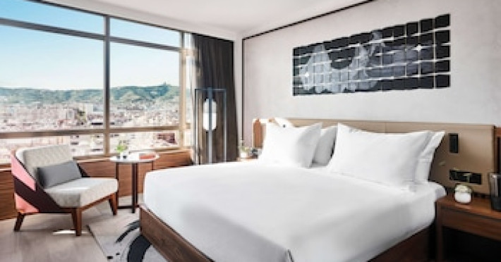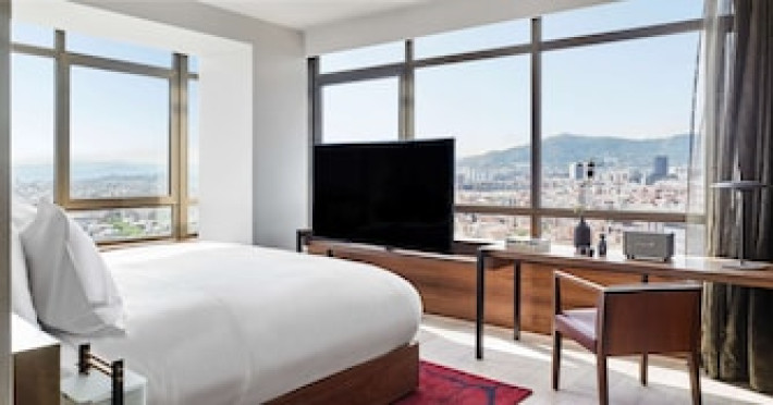 About 7 km from a beach lies the 5 star hotel Nobu Hotel Barcelona. The old town is around 5 km away. A supermarket and other shops you reach after around 100 m. There is a 24h shuttle service between the hotel and the airport (for a fee) 24h a day. To reach the beach a shuttle (for a fee) is provided. The air-conditioned, GPS-verified hotel has a 24h reception (check-in is possible around the clock), a lobby bar, Wi-Fi, internet access, 6 lifts, a first aid kit, parking spaces (limited and for a fee) as well as a TV lounge with satellite TV. In the outdoor area you will find a supervised pool (open all year), where sun loungers, sun umbrellas and pool towels are available for free. There is also a children's pool with a non-swimming area. Furthermore, outside you can find a roof terrace. Inside the hotel you can use a heated indoor pool. You can store your valuables in the safe, and your luggage in the hotel`s storage room. In addition, the hotel Nobu Hotel Barcelona is video-monitored 24h a day. For very young guests, kid`s chairs can be provided. There is also a laundry service available at an additional cost to customers as well as an ironing service. Ironing equipment can also be rented at the hotel for a fee. For your comfort, in addition to the concierge service the hotel page will ensure you are looked after. Guests at the accommodation can get a wake-up call from the hotel personnel. The energy supply is 220, 110, 120, 230 and 240 Volts. For conventions and other business meetings, the hotel offers EXTRA_FEE (auditorium-style) conference rooms with a total of 300 seats, a reception, lectern, tables, a video projector, overhead projector, internet access as well as a catering service. At the reception, tickets are offered for excursions in the area. Pets like cats and dogs are allowed in the hotel (for a fee). For guests on their honeymoon, the hotel has special offers such as a romantically-decorated room, personalised rooms/articles, rooms with a particularly romantic location and view, romantic dishes in the restaurant, champagne, sparkling wine, a present, a basket of fruit or flowers in the room. In your hotel, a lot of focus is placed on sustainability. This includes waste segregation in the rooms, the hotel`s own recycling bins, organic food and ecological meals and a central room air-conditioning. That is why the hotel Nobu Hotel Barcelona was also awarded a sustainability certificate. The hotel requires that all guests pay a deposit upon arrival. American Express, Euro/Master Card and Visa are accepted as means of payment. Due to its barrier-free facilities , such as barrier-free entrances, wheelchair accessible rooms and wheelchair-accessible bathrooms, the hotel is also suitable for wheelchair users. Catering As catering services the hotel offers self-catering. Breakfast is offered American, continental, from the buffet, à la carte or as brunch. Lunch and dinner are also served as a set meal or à la carte with starters, salads and desserts (extras on request and at extra cost). As part of the all-inclusive service, water (24h), softdrinks (24h), coffee and tea (24h) as well as wine (24h) are available at no extra charge. For the meals, there are a buffet restaurant with terrace (Mediterranean, calorie-reduced, gluten-free and vegetarian dishes) and 2 bars, the cafeteria, the pool bar as well as a sky bar. The drinks menu of the hotel includes water, soft drinks, coffee and tea, wine and 24h international alcoholic beverages. During your stay you can take part in the cooking classes offered by the hotel (extra fee). Distances- Discotheque: approximately at 1 km