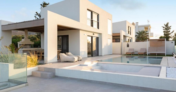 Facilitati hotel: Complexul pune la dispozitie piscine private cu sezlonguri si umbrele, gradini amenajate, zone pentru luat masa in aer liber si spatii de relaxare concepute pentru confort maxim. Oaspetii pot beneficia de transferuri de la aeroport, servicii de concierge, inchirieri auto, masaje, babysitting, tratamente de infrumusetare, servicii de curatatorie si excursii cu barca. Parcarea este gratuita, iar prosoapele pentru piscina sunt incluse. Atmosfera intima, designul modern si serviciile personalizate transforma fiecare vila intr-un sanctuar privat in inima Cretei.