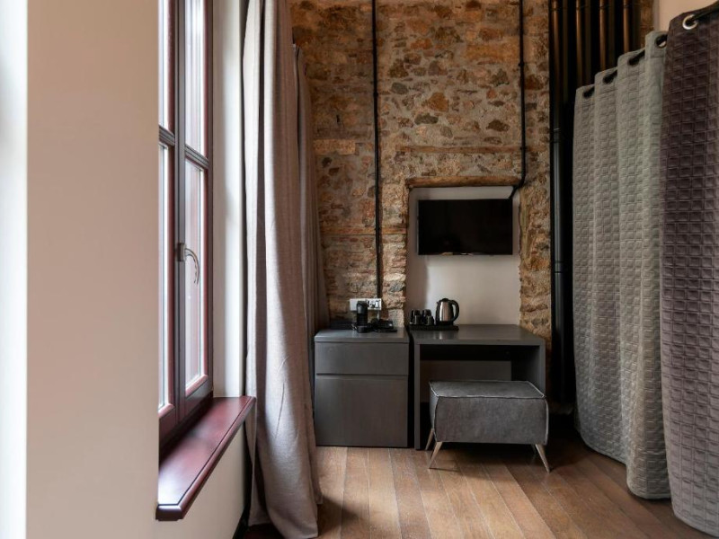 Moțificate cu podele de parchet și culori moi, camerele izolate fonic de la Hotel @Syngrou Fix sunt echipate cu un birou, un frigider, un ceainic și un televizor cu ecran plat. Fiecare include o baie privată, cu uscător de păr și articole de toaletă gratuite. Fiecare include o mașină espresso și capsule gratuite. Unele unități se deschid la balcoane cu vedere la Muzeul Național de Artă Contemporană și o parte a orașului. Fiecare suită are plite ceramice și articole de bucătărie.
