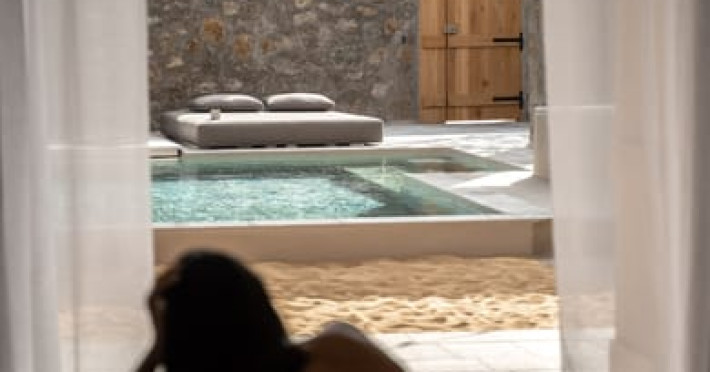 Aiming to make the most out of the sunshine and the starry skies, NOMAD lies just 200m from one of the most beautiful beaches of the island, Kalo Livadi. A brand-new property, consisted of 14 private unique suites, that will bring its guests closer to the rustic life of the island. NOMAD?s guests can experience the Old Mykonos while spending their days and nights in their private terrace with outdoor pool and/or hot tub taking advantage of our discreet high-end service and liberating body and mind. Due to the particular construction of the hotel, for safety reasons, children below the age of 13 are not allowed.Datorita dinamicitatii domeniului disponibilitatea ofertelor se modifica de la un moment la altul. De aceea ofertele sunt valabile in limita locurilor disponibile. Agentia nu este responsabila pentru eventualele neconcordante care pot aparea intre informatiile privind tarifele si alte detalii din site si informatiile primite in agentie. In aceste cazuri vor avea prioritate, intotdeauna, informatiile primite in agentie.