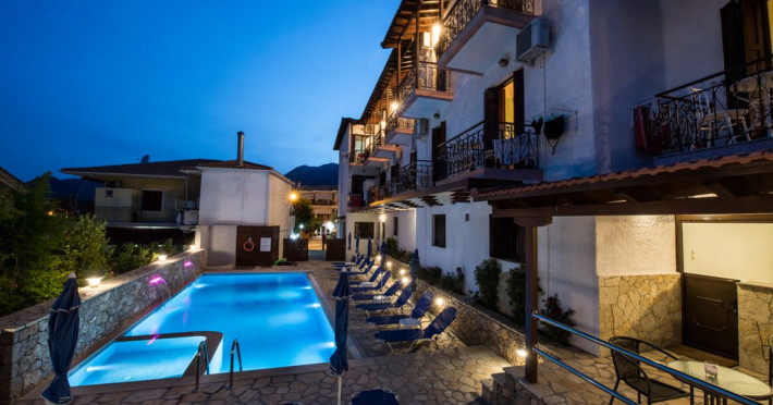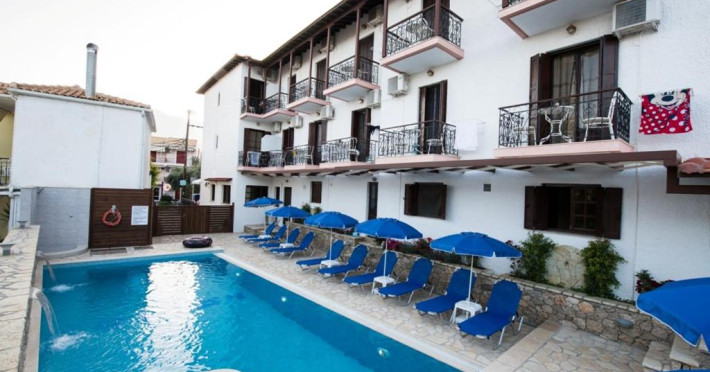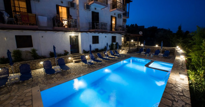 In one of the most beautiful places of Lefkada, Perigiali you can find hotel ‘Nostos‘, which awaits you in a family and friendly environment to offer you dream vacations. Nostos Hotel is 150 meters away from the beach and it features an outdoor pool with sunbeds and umbrellas for unique moments of relaxation. For the safety of the customers vthere is a central safe and for their service a spacious parking. There is also a bar where you can enjoy a wide selection of drinks, soft drinks or coffee.