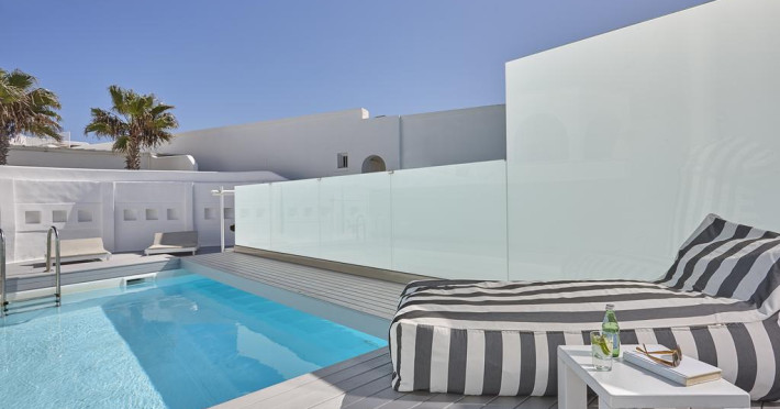 Situată în Vlychada (Santorini), la o distanță de 150 m de plaja Vlychada, această proprietate de 4 stele dispune de piscină interioară, piscină în aer liber și terasă cu șezlonguri și umbrele de soare. Proprietatea are servicii de recepție cu program non - stop, concierge și închirieri auto. Se oferă acces gratuit la internet Wi-fi în spațiile publice. Parcarea este posibilă pe stradă, în imediata apropiere a proprietății.