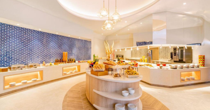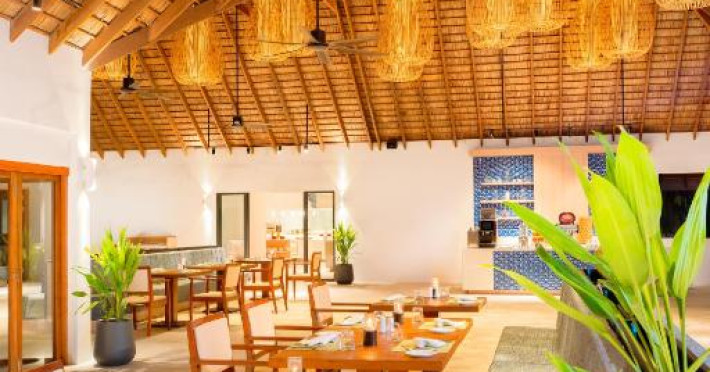 Proprietatea servește zilnic un mic dejun tip bufet, continental sau englezesc/irlandez complet. Nova Maldives are un restaurant care servește mancăruri din bucătăria americană, cantoneză și indiană. La cerere, sunt disponibile și preparate vegetariene, fără lactate și halal.