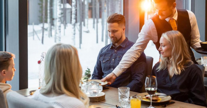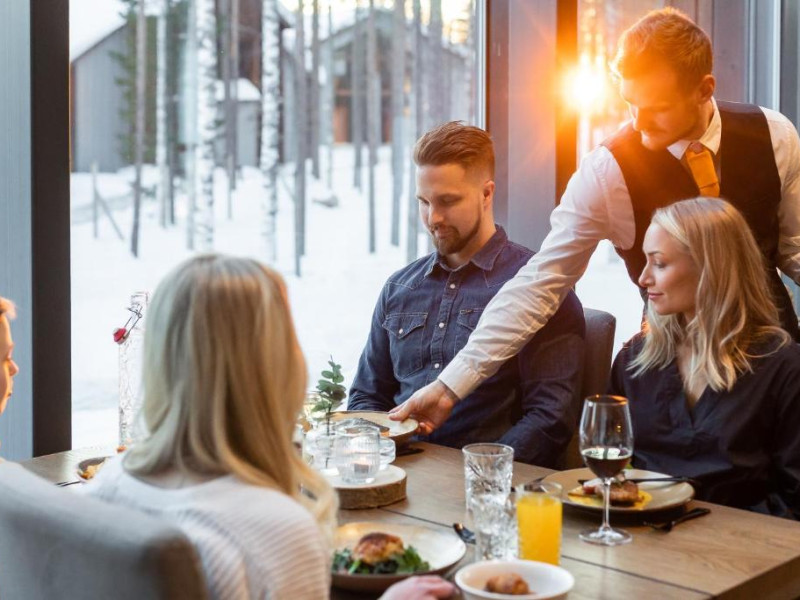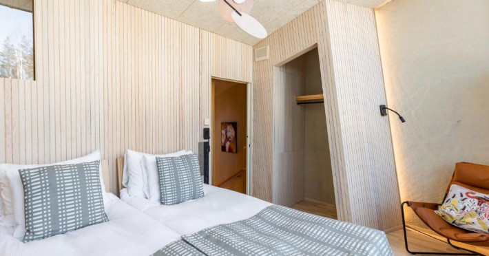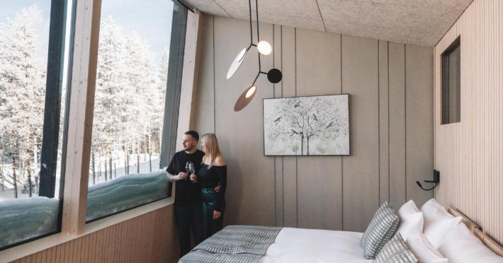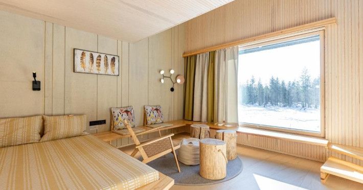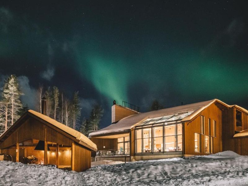 Camerele spațioase sunt decorate in stil nordic minimalist, multe dintre ele oferind vederi spectaculoase spre peisajul arctic. Facilitățile includ restaurant cu specific local, saună finlandeză tradițională, și lounge cu șemineu - locul perfect pentru a admira aurora boreală in serile de iarnă.