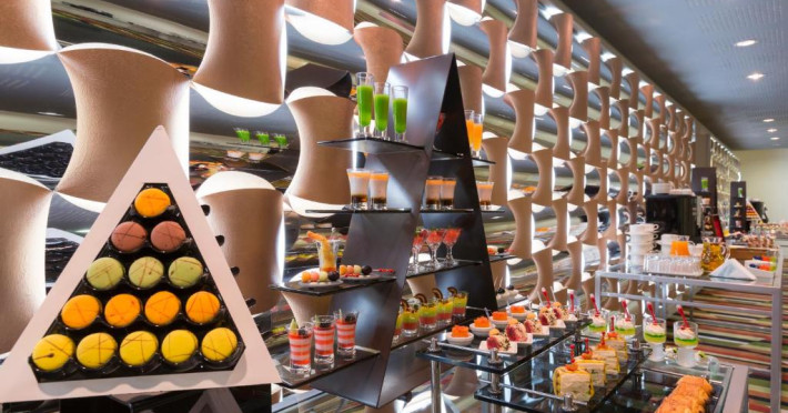 La Novotel Abu Dhabi Al Bustan oaspeții au la dispoziție un restaurant care servește mâncare în stil bufet. Preparate din bucătăria internațională așteaptă să fie degustate în fiecare zi. Masa poate fi servită atât în interior, cît si în aer liber, pe terasă, în funcție de vreme. Oaspeţii pot avea diverse băuturi răcoritoare sau alcoolice la bar. În cadrul proprietății există și o cafenea care servește specialități din cafea și diverse delicatese. Pentru cei cu anumite nevoi de nutriție, Novotel Abu Dhabi Al Bustan oferă meniuri pentru diete speciale.
