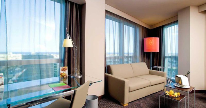 This city hotel, housed in a super modern building offering panoramic views to the city, is located in Diagonal Avenue, in the heart of Barcelona and very close to Jean Nouvel Tower. Within the area, guests will find public transport links, both bus and tram are just outside the hotel and the underground line can be reached after a five minute walk. A number of restaurants, bars and shops are also easily reachable on foot. The airport is approximately 22 km from the hotel..Se aceptan las tarjetas American Express, Diners Club, MasterCard y VISA como formas de pago.Datorita dinamicitatii domeniului disponibilitatea ofertelor se modifica de la un moment la altul. De aceea ofertele sunt valabile in limita locurilor disponibile. Agentia nu este responsabila pentru eventualele neconcordante care pot aparea intre informatiile privind tarifele si alte detalii din site si informatiile primite in agentie. In aceste cazuri vor avea prioritate, intotdeauna, informatiile primite in agentie.