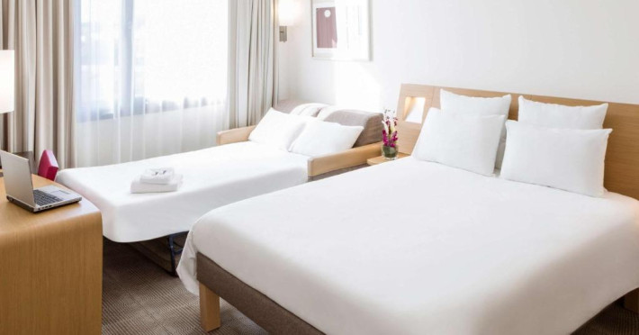 Camerele de la Novotel Barcelona City sunt prevăzute cu aer condiționat și au decor simplu si modern. Pană la 2 copii cu varsta sub 16 ani beneficiază de cazare gratuită dacă impart camera cu părinții.