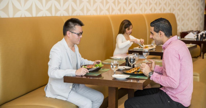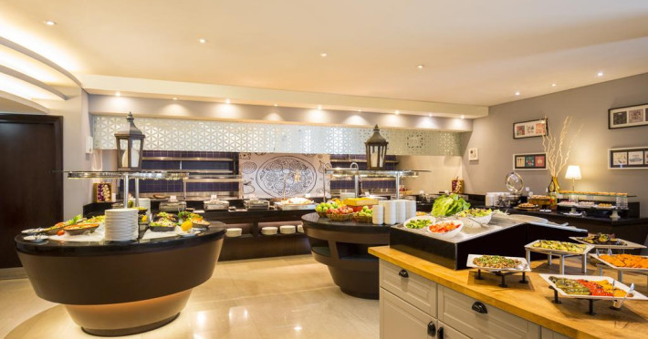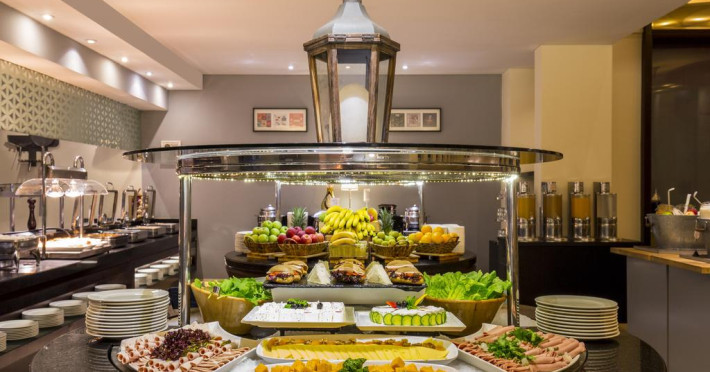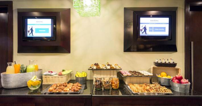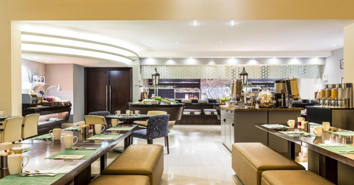 Preparate din bucătăria internațională și mediteraneană așteaptă să fie degustate în fiecare zi la micul dejun, prânz și cină. Masa poate fi servită atât în interior, cît si în aer liber, pe terasă, în funcție de vreme. Oaspeţii pot avea diverse băuturi răcoritoare sau alcoolice la bar. În cadrul proprietății există și o cafenea ideală pentru o gustare rapidă. Pentru cei cu anumite nevoi de nutriție, Novotel Deira City Centre oferă meniuri pentru diete speciale.
